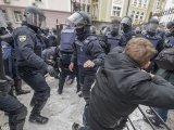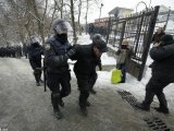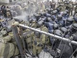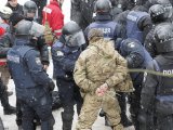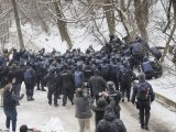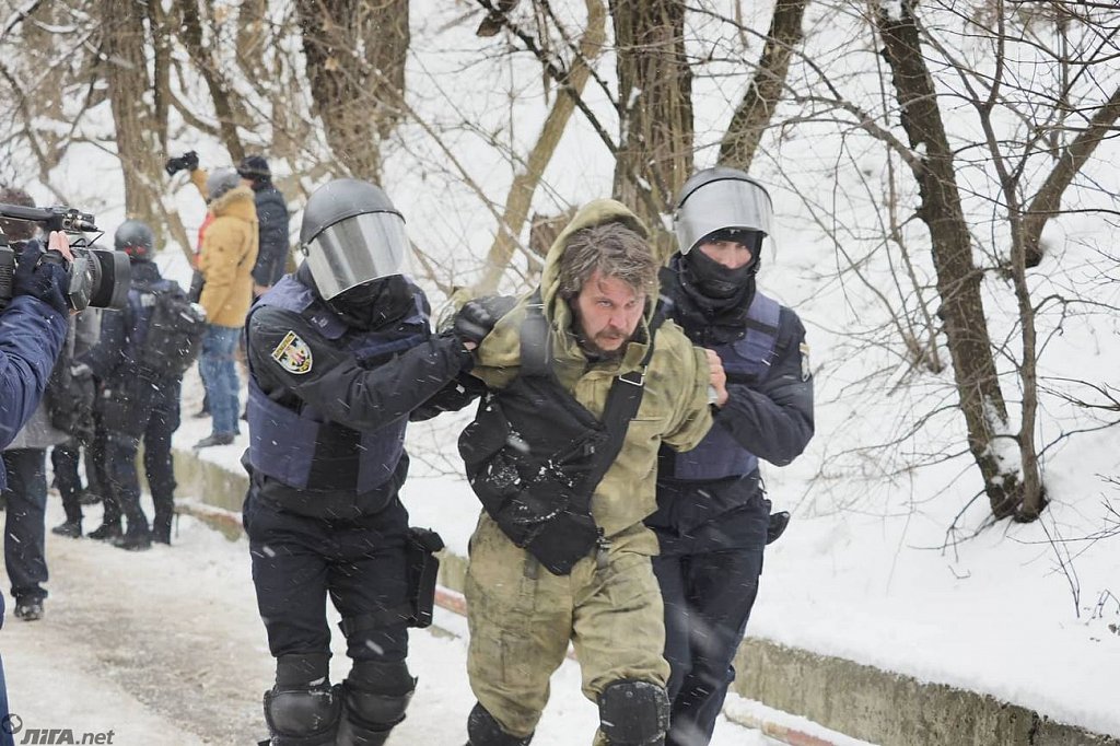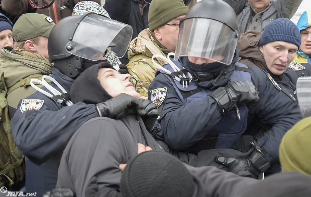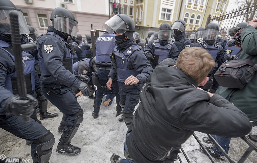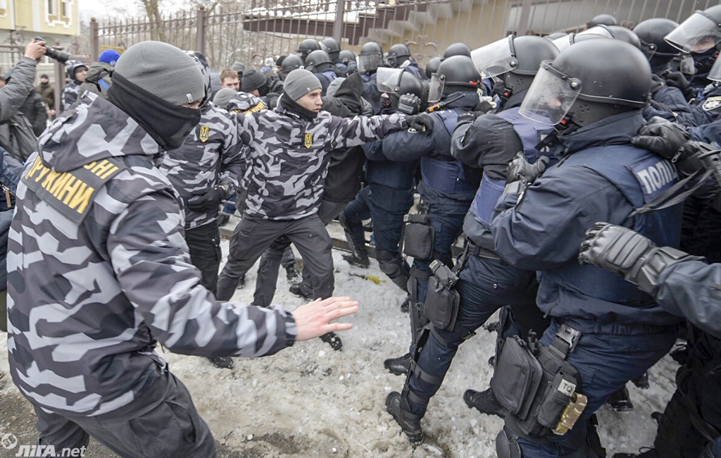 Наряды полиции и Нацгвардии под зданием были усилены, и вскоре уже между ними и представителями правых движений произошли столкновения. Полиция применила слезоточивый газ, а неизвестные бросали в них файеры.