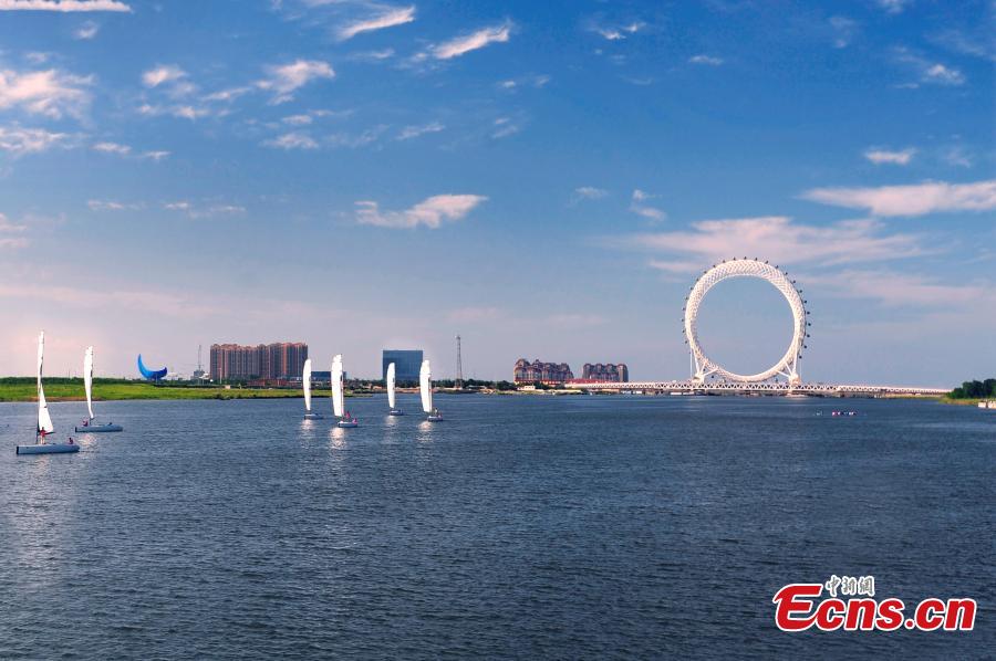 В отличие от большинства колес обозрения, "Бохайский Глаз" было построено на 540-метровом мосту реки Байланг.