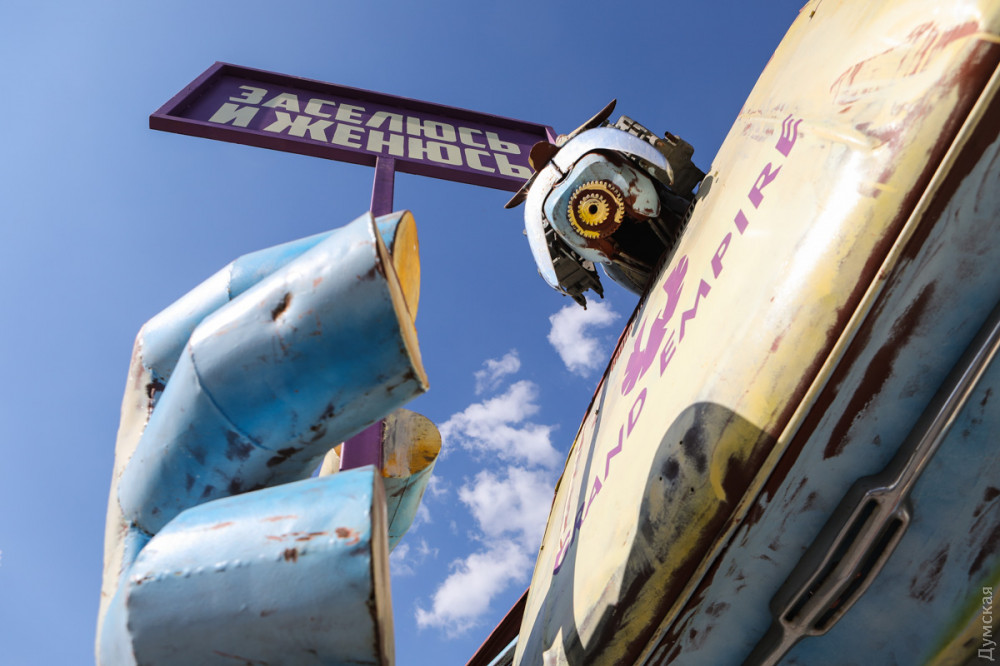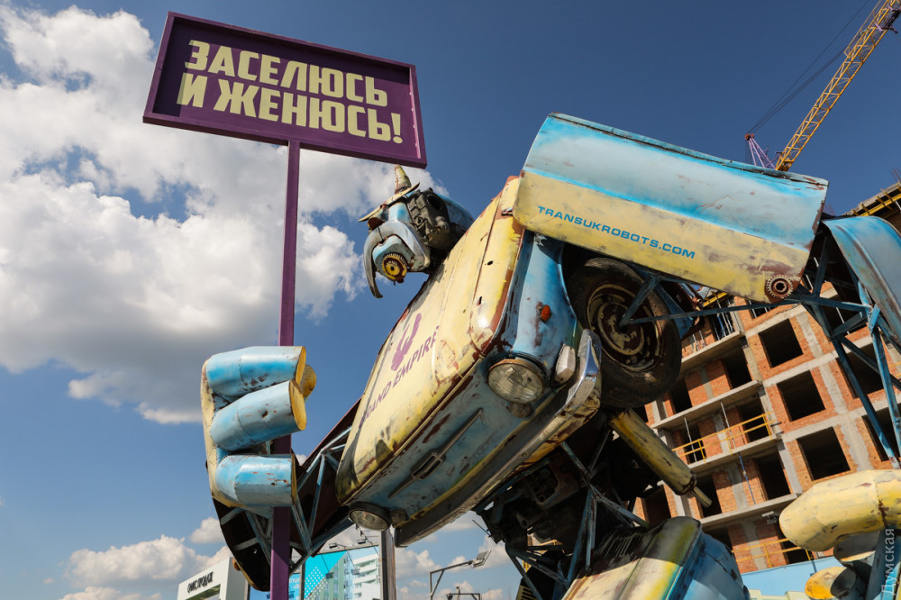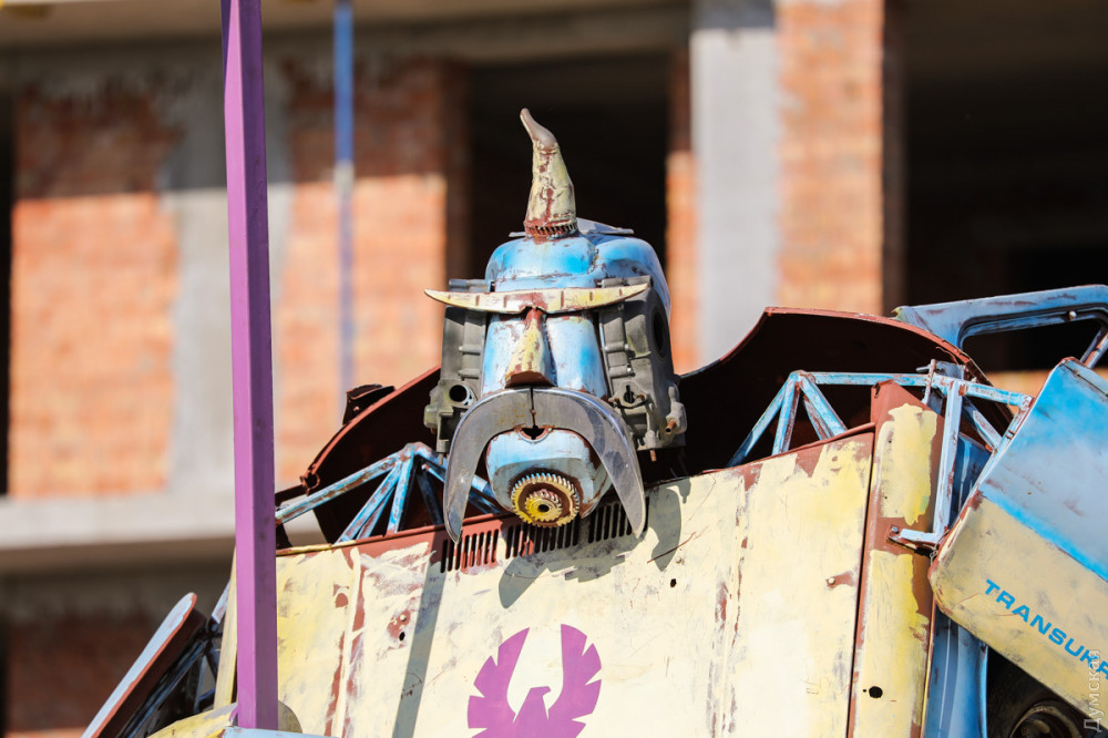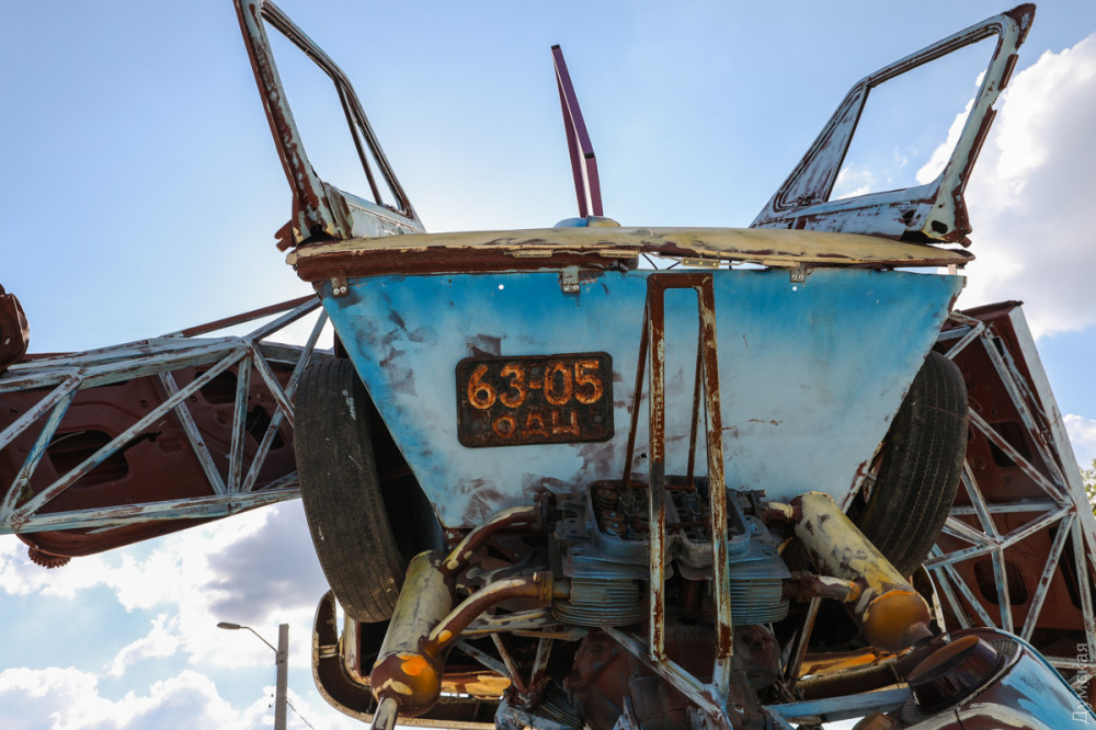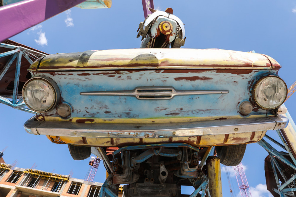 Эта композиция, напомним, появилась в прошлом году и создана из деталей старых «Запорожцев». Идея создания у автора появилась после просмотра «Трансформеров».