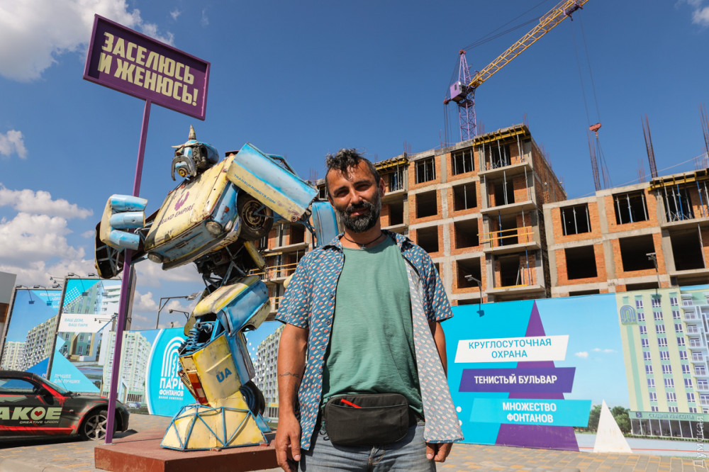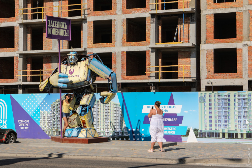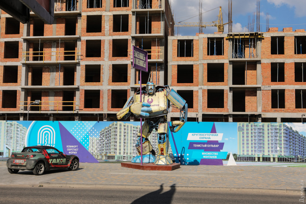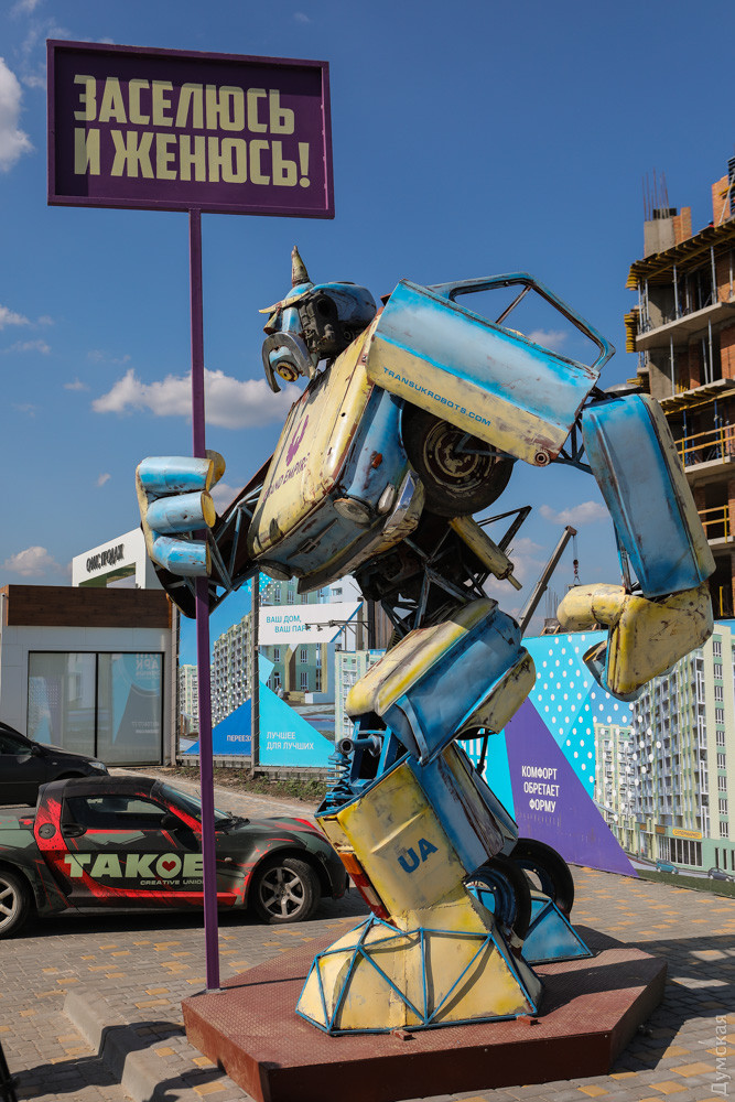 Известный одесситам трансформер дедушка Бамблби, созданный инженером-скульптором Александром Миловым, наконец, определился с постоянным местом жительства и поселился в ЖК «Парк Фонтанов».