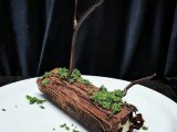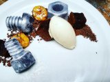 Например, это бисквит с оливковым маслом, сверху крошки мяты, сладкая молочная пена и пюре из запеченного яблока.