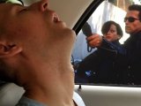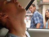 Девушка решила подшутить над своим парнем, который заснул в машине.