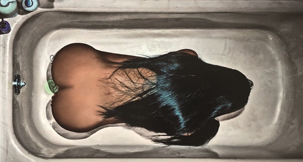 Также звезда появляется в абсолютно неожиданных позах. На одном снимке Кардашьян лежит в ванной, подобрав под себя ноги, спиной к камере. На другом - полностью демонстрирует все свои прелести в расслабленной позе на боку.