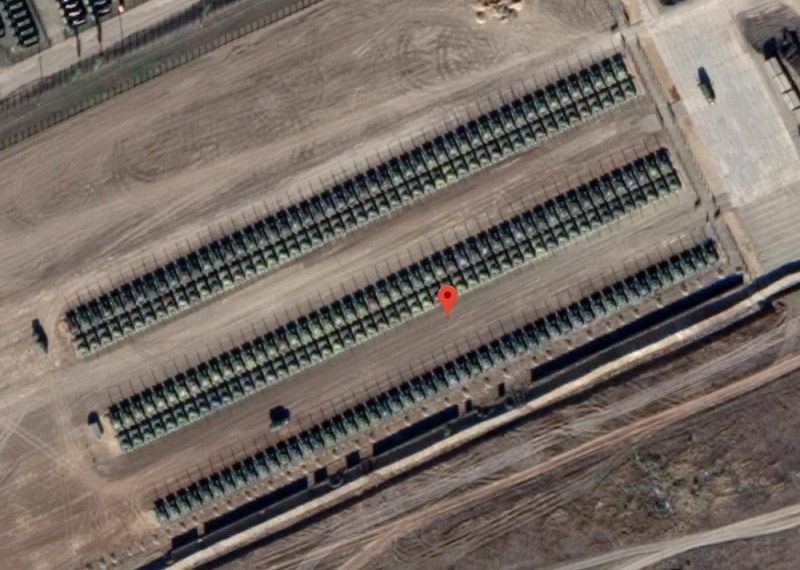 "Изображения показывают сотни основных боевых танков, таких как Т-64, а также Т-62М, в то время как тысячи военных грузовиков, артиллерийских систем и танкеров расположены немного выше", — сказано в сообщении.