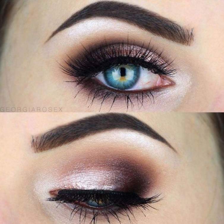 Каждый цвет глаз красив по-своему. Зелёные глаза считаются колдовскими и завораживают не хуже приворотного зелья, в карих глазах можно найти чертинку, они задорные и весёлые, голубые глаза такие же бездонные, как океан. И конечно, если вы женщина, вы задумываетесь о том, какой макияж подходит именно вашему цвету глаз. Вам стоит распрощаться с такими понятиями, что голубым глазам подходят лишь серые, стальные и голубые оттенки, ведь это заблуждение. Возможно, мы удивим вас, но голубым глазам идут практически все оттенки теней. Смотрите сами.