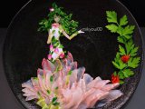 Процесс этот так увлёк mikyoui0, что он принялся изучать способы приготовления сашими, смотреть видеоролики знаменитых поваров и, конечно, фантазировать. Теперь отцу семейства и самому есть чем похвастаться и удивить публику, ведь его сашими потрясающе красивы.