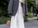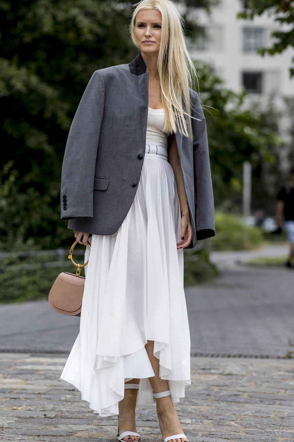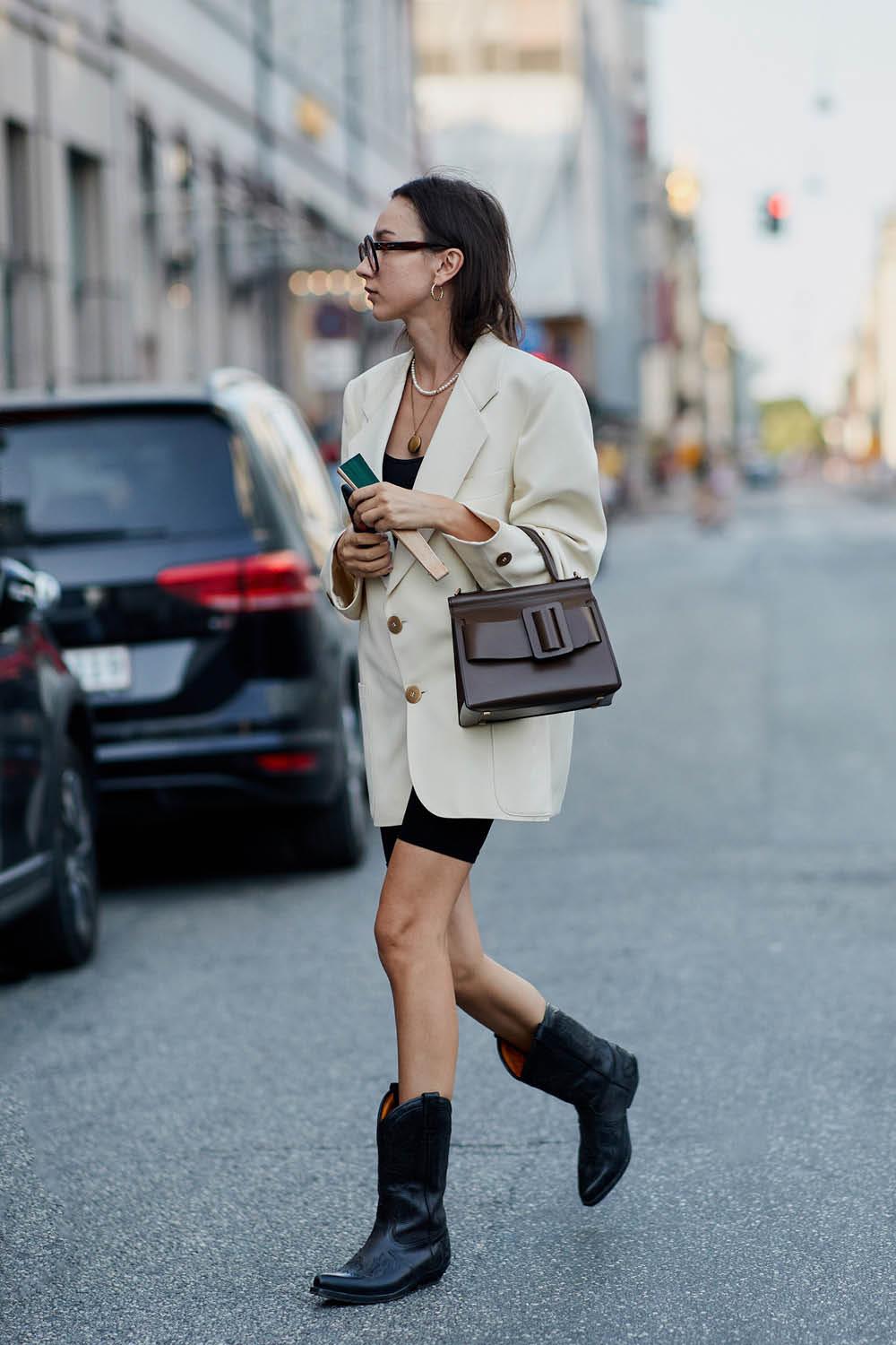 Сочетания женской и мужской одежды выглядит очень стильно и дорого. Чтобы сделать простое платье частью модного лука, просто сочетайте его с пиджаком оверсайз в мужском стиле.