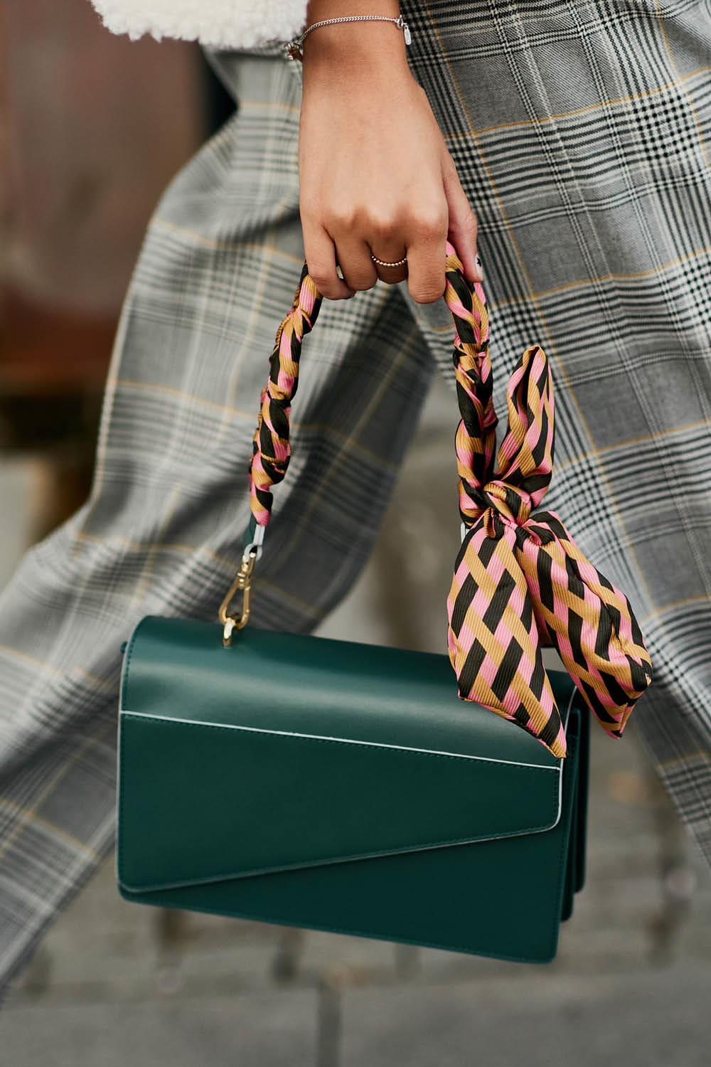 В дешевых сумках часто очень быстро изнашиваются ручки: облазят, стираются, трескаются. Самый лучший способ скрыть это – повязать трендовый платок. Проблема решена!
