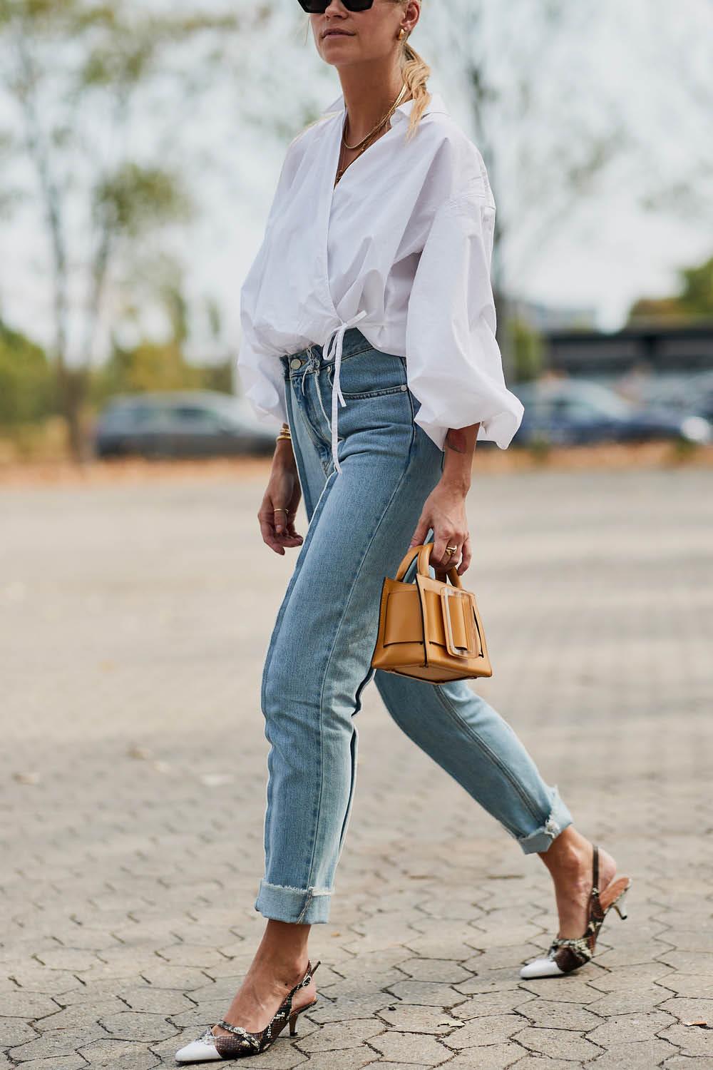 У вас есть рубашка, которая не очень хорошо сидит на вас? Ее можно легко изменить: закатайте рукава и завяжите спереди узел из нижних углов рубашки. Образовавшиеся складки на ткани скроют недостатки кроя.