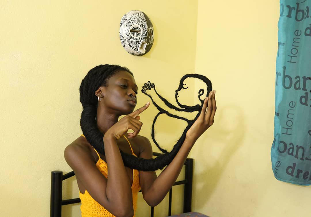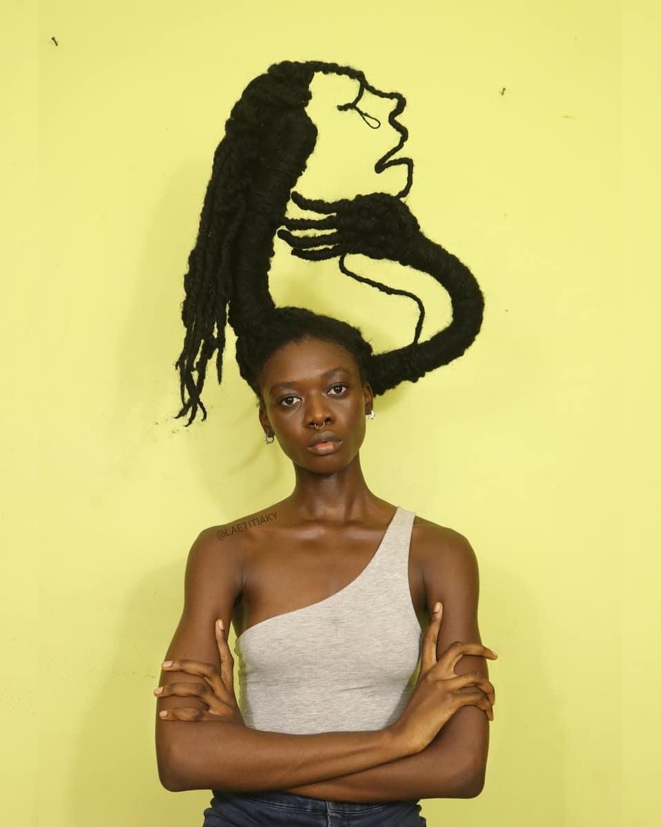 В Instagram все популярнее становится аккаунт 23-летней художницы из Кот-д’Ивуара (Западная Африка), которая создает всевозможные фигуры из собственных волос. К тому же просто у себя на голове.