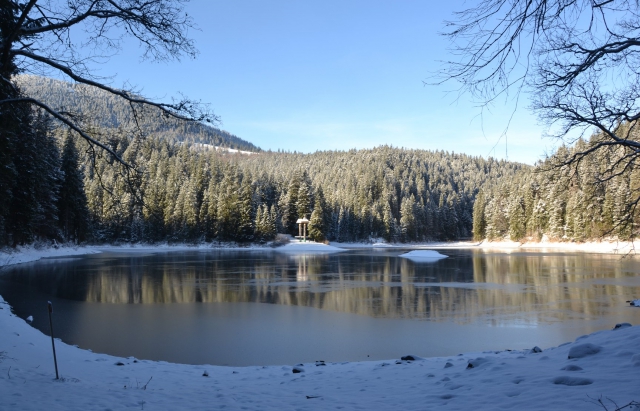 Отмечается, что Синевир несколько обмелело, вокруг уже покрыто снегом и даже, в зависимости от погоды, начинает покрываться льдом. Не стоит бояться холода и все-таки посетить озеро. Заодно можно навестить и медведей.