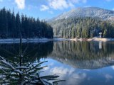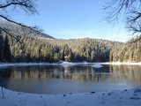 Появились фото озера Синевир в Закарпатской области, которое засыпало снегом.