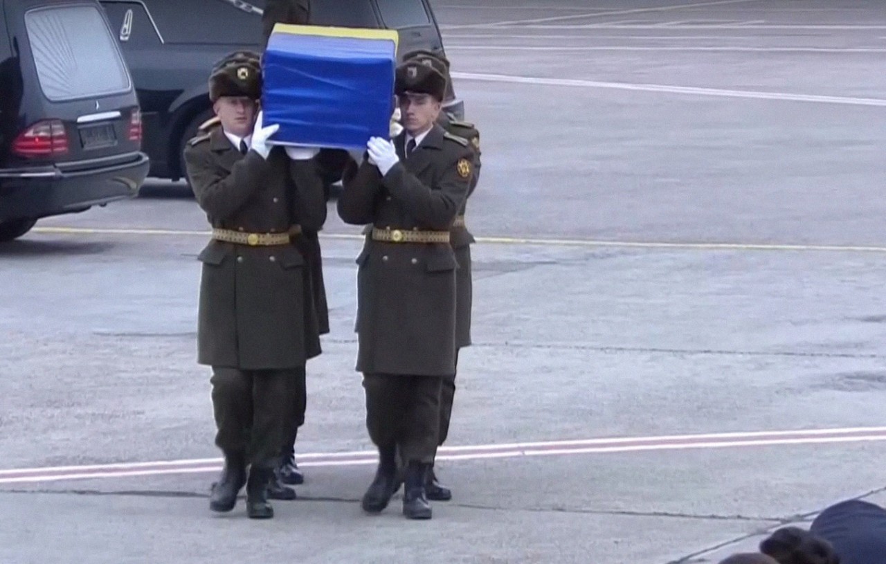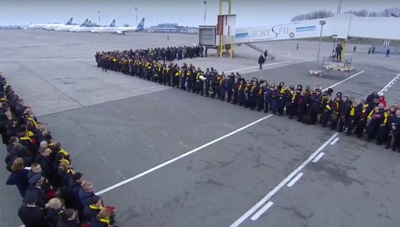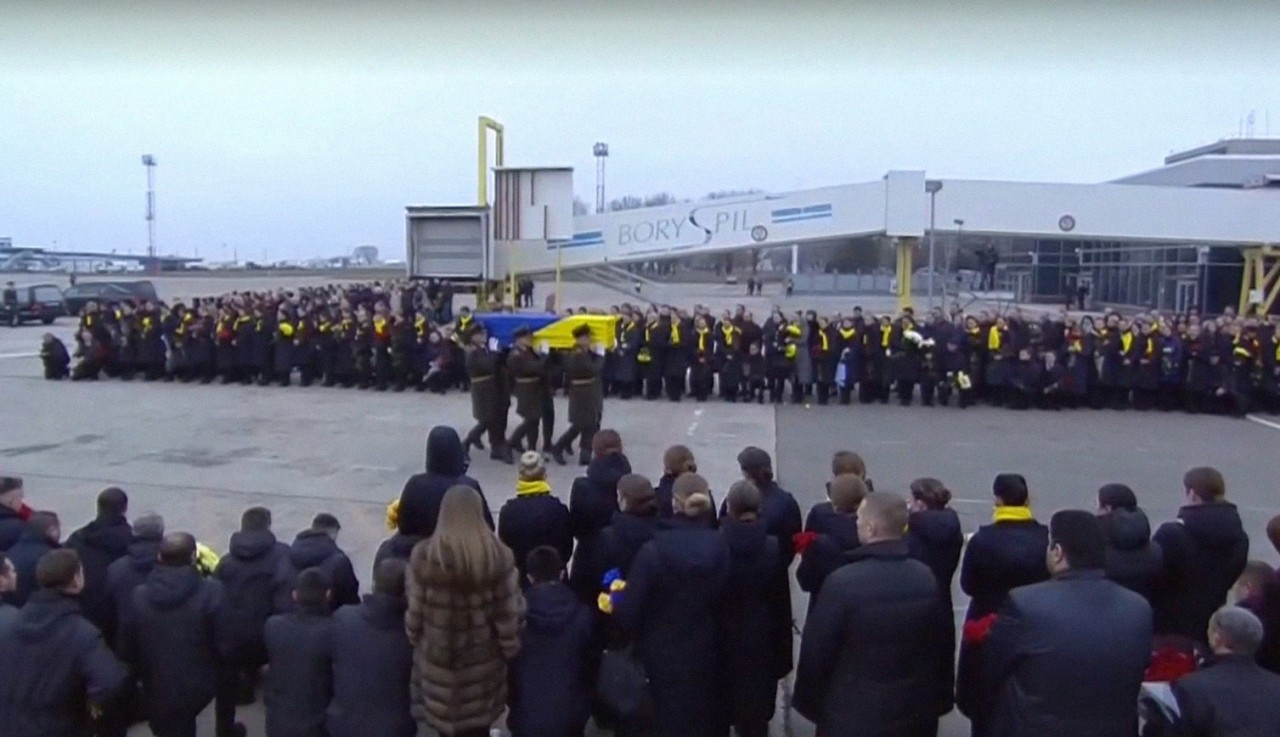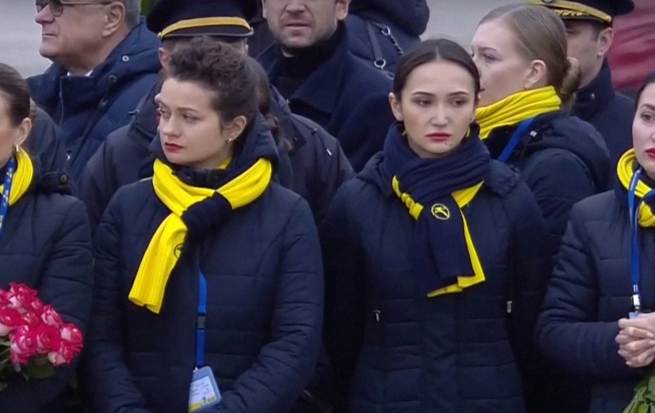 Так, по дороге в терминал "В" в аэропорт "Борисполь" траурный кортеж провожала шеренга из нацгвардейцев. В аэропорту живой коридор образовали коллеги, пилоты встречали украинских погибших, став на колени.