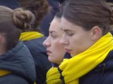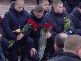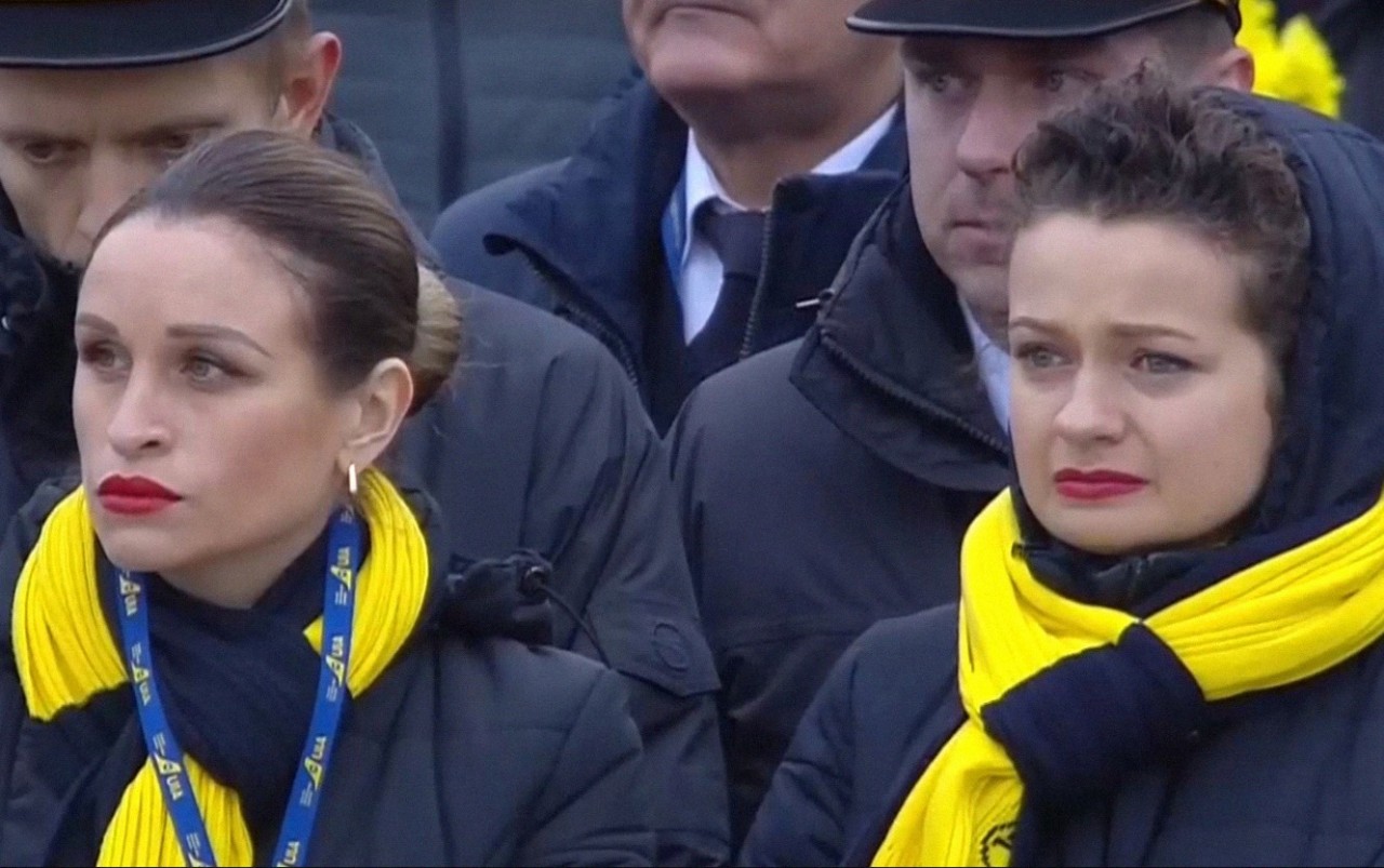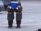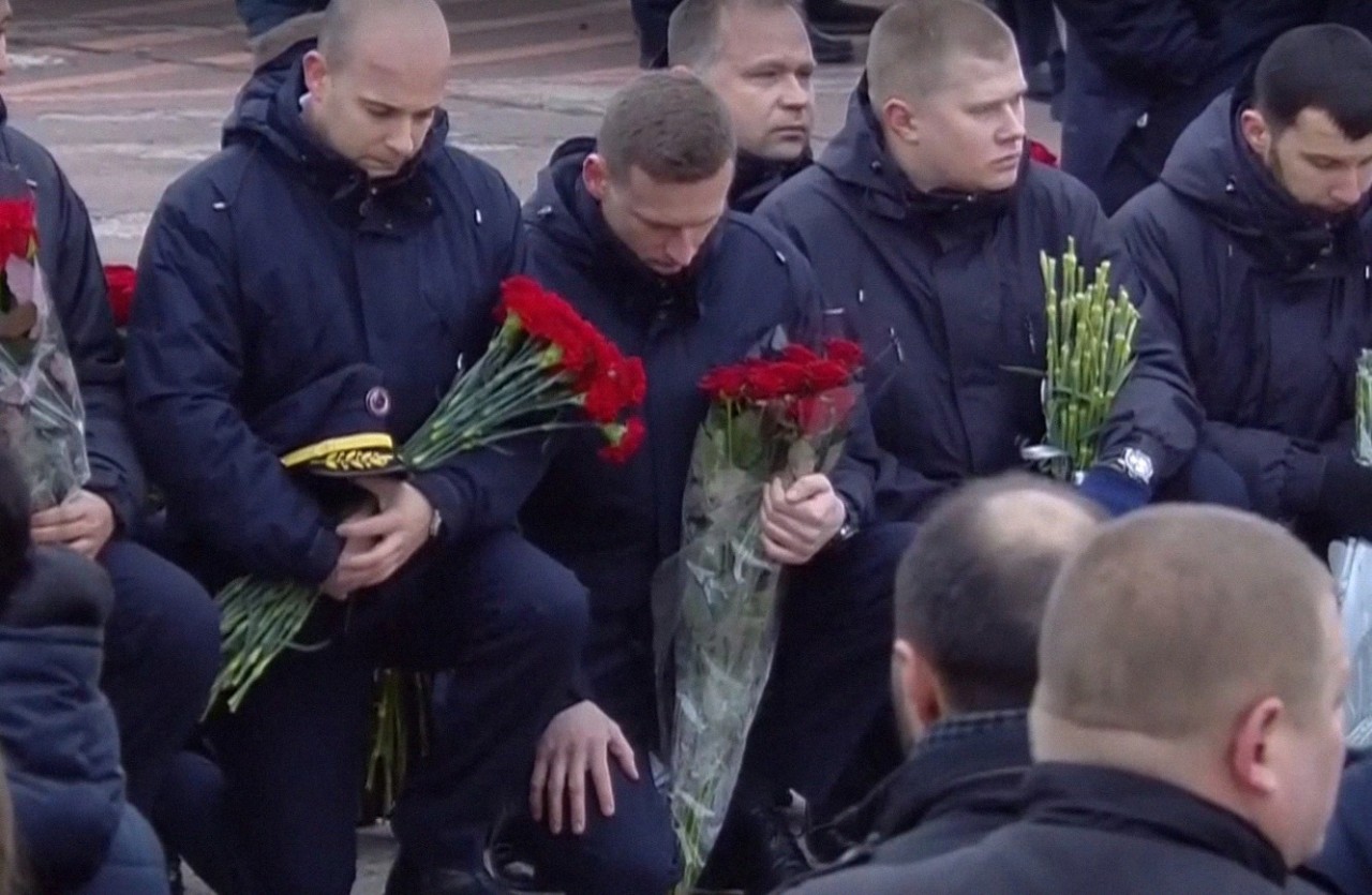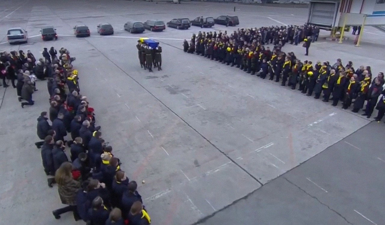 Так, по дороге в терминал "В" в аэропорт "Борисполь" траурный кортеж провожала шеренга из нацгвардейцев. В аэропорту живой коридор образовали коллеги, пилоты встречали украинских погибших, став на колени.