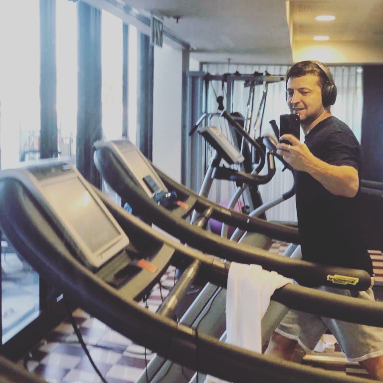 Зеленский следит за собой, и часто занимается в тренажерном зале, или бегом на улице.