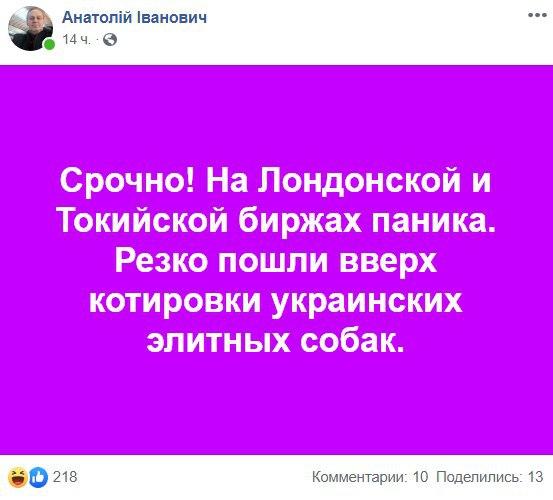 Высказывание народного депутата от фракции "Слуга народа" Евгения Брагара, который предложил пенсионерке продать свою собаку для оплаты коммунальных тарифов, продолжает порождать остроты у пользователей сети.