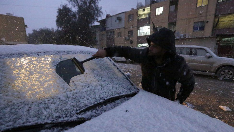 В Багдаде и нескольких других городах Ирака выпал снег. В иракской столице снег выпал только второй раз за сто лет наблюдений. В горных, северных районах Ирака снег выпадает часто. Однако для Багдада и жарких южных городов страны, таких, как Карбала, - это необычное погодное явление.