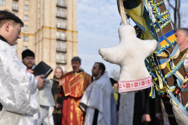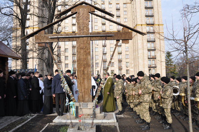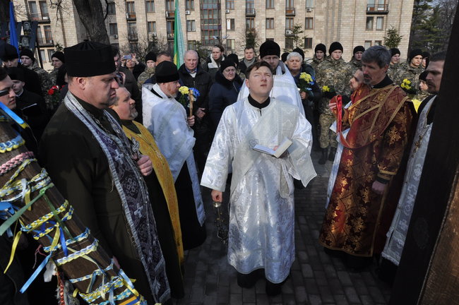В Киеве состоялась панихида по Героям Небесной Сотни при участии семей погибших майдановцев, активистов, военных и представителей городской власти. После поминальной службы начался Марш памяти.