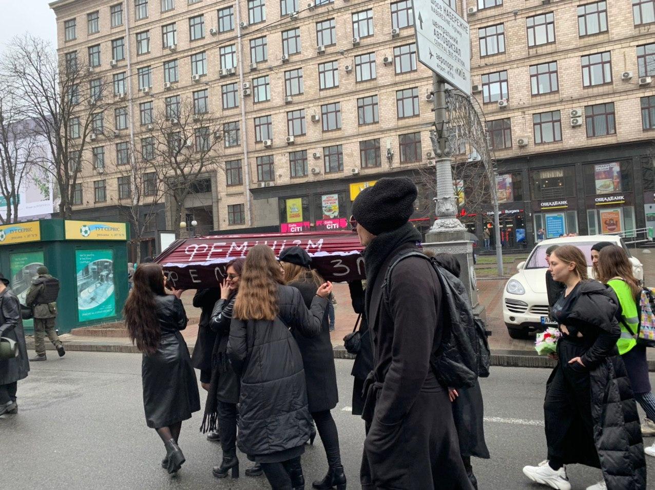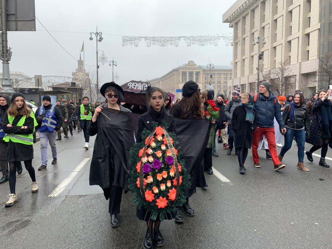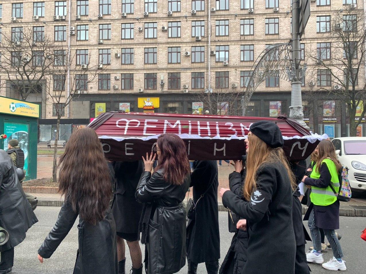 В рамках марша за права женщин активистки подготовили перфоманс-похороны феминизма - передает FaceNews.ua.