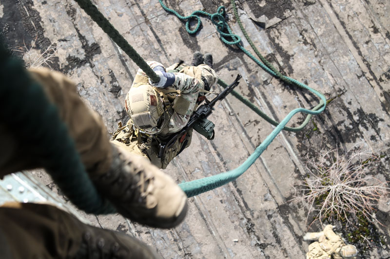 Одно из подразделений Сил специальных операций отработало способы безпарашутного десантирования в сложных условиях. С помощью комплекта съемного бортового оборудования "Канат-1" или т.н. fast-rope, воины ССО вместе с экипажем вертолета совершенствовали навыки быстрой высадки и эвакуации.