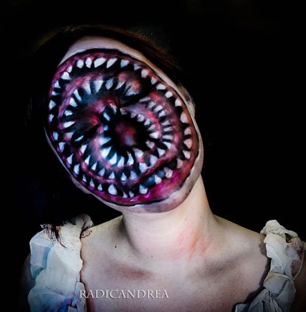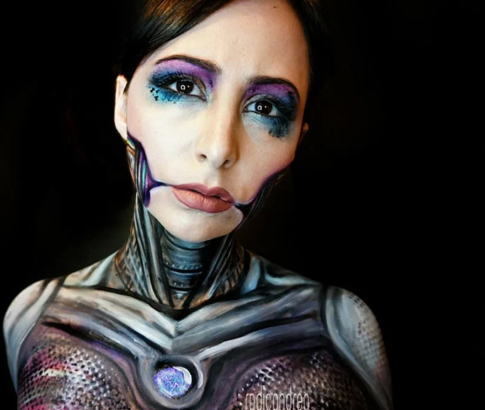 Косметолог и видеоблоггер Андреа де ла Осса (Andrea De La Ossa) не имеет проблем с выбором образа на Хэллоуин. Благодаря своим навыкам в нанесении макияжа эта симпатичная девушка запросто превращается в жутких монстров. Девушка не только превращает себя в уже существующих персонажей, но и придумывает новых.