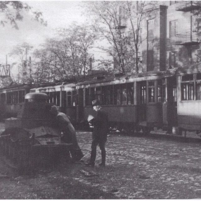 Когда-то тут ходил трамвай. До того, как трамвайные пути перенесли на улицу Маяковского, вагоны шли по Нигояна (Калинина), поворачивали на Бельгийскую и выходили на Маяковского.