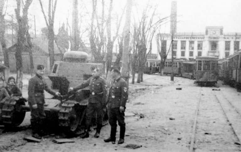 Старая проходная завода Петровского в районе перекрестка улиц Маяковского и Бельгийской. Сегодня это здание выглядит намного хуже, чем во время войны, передает FaceNews.ua.