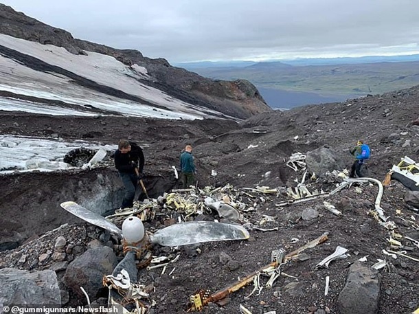 На леднике Эйяфьятлайокудль в Исландии оттаяли обломки разбившегося там 76 лет назад американского бомбардировщика B-17 Flying Fortress.