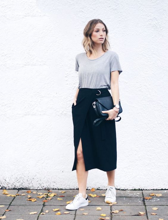 Как носить юбку и кроссовки: стильные образы на каждый день (фото)