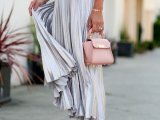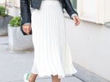 В этом сезоне очень модными стали юбки плиссе. Их можно носить со светлыми кроссовками или кедами, кожаной курточкой и небольшой сумочкой.