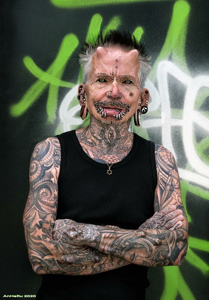 Мужчина также сделал рекордное количество пирсингов. На его теле насчитывается 453 прокола, 158 из которых в зоне губ и 37 – вокруг бровей. Интересно, что он не собирается останавливаться на достигнутом.
