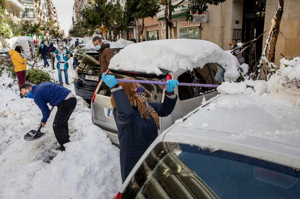Как отмечается, в воскресенье очищать улицы от снега вышло много мадридцев. Большинство из них работали используя лопаты, но, по словам СМИ, некоторые из жителей города использовали для расчистки улиц даже сковородки.