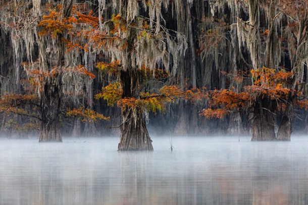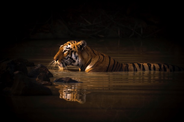 Чтобы сделать этот снимок борнейского орангутана фотограф залез на дерево в национальном парке Танджунг Путинг и стал ждать. «Я выбрал дерево, которое росло в воде, чтобы получить хорошее отражение неба, из-за которого изображение будет выглядеть перевернутым. Затем я залез на дерево и ждал несколько часов. Это обычный путь, по которому орангутаны переправляются на другой остров, поэтому я был уверен, что получу этот кадр, если буду терпеливо ждать» - рассказал Виджаян.