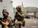 Во время учений сводная группа спецназовцев трех стран отработали абордажные действия на британском эсминце Defender. Абордажные действия заключаются в неожиданном для противника захвате судна. Их используют для освобождения кораблей от пиратов.