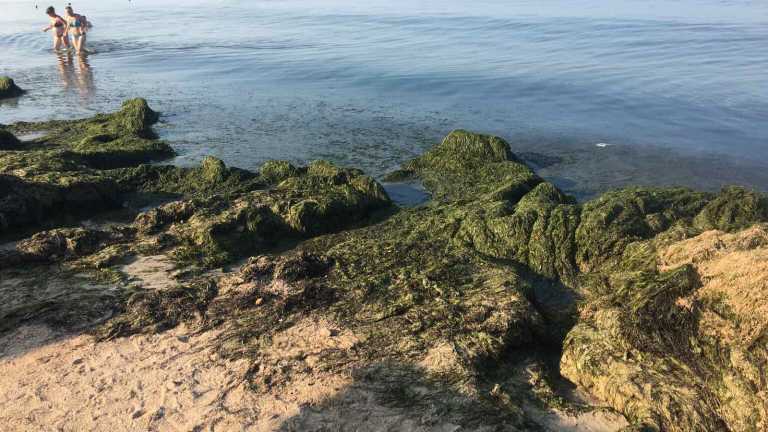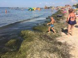В курортном Бердянске изменилось направление ветра. В результате к берегу прибило тонны зеленых водорослей, заменили медуз.