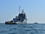 Военные тренируются с использованием новейшего водолазного снаряжения стран-участниц, специального оборудования поисково-спасательного судна украинских ВМС "Александр Охрименко" и гидрографического комплекса судна морских сил Румынии "Александру Катанеану".
