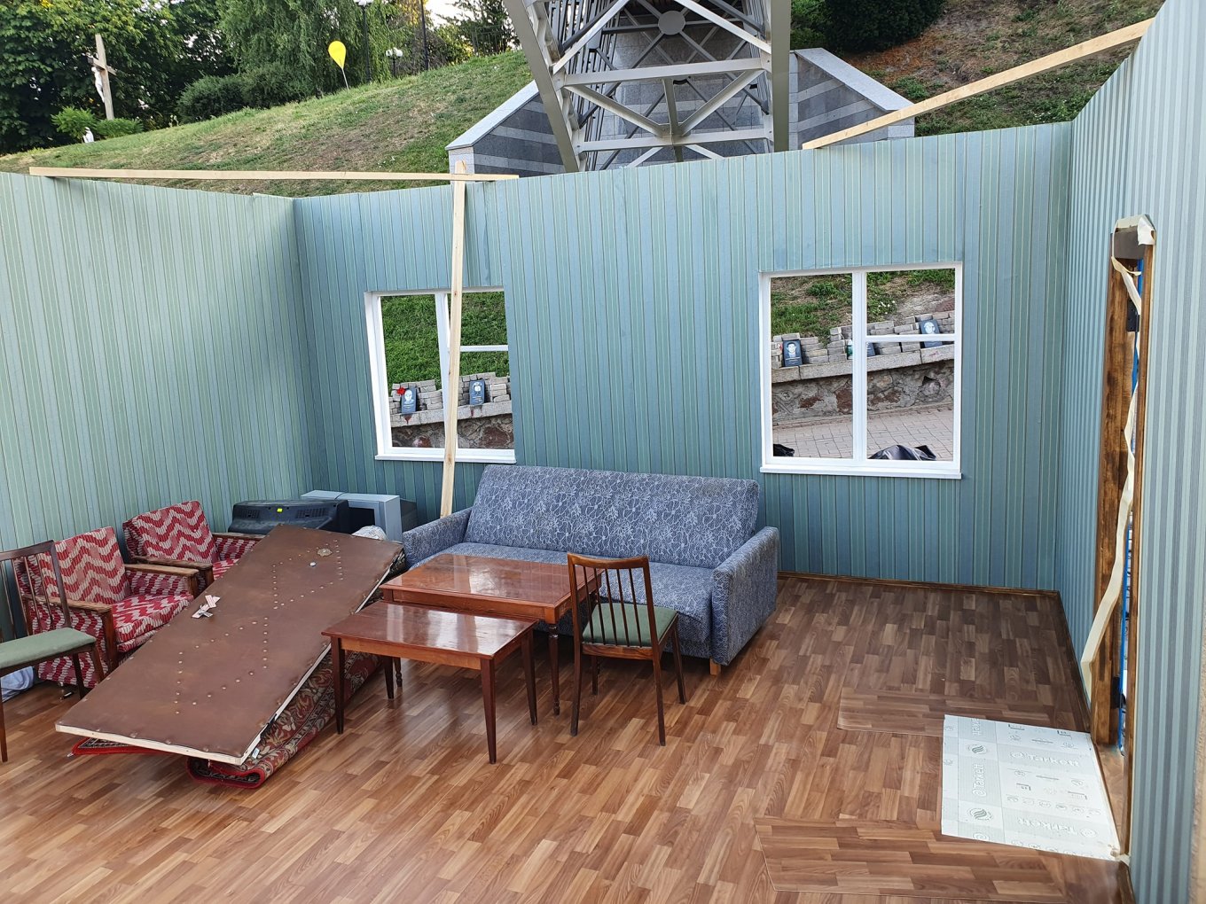 Глаза расстрелянных в окнах "хрущевки": на Аллее Небесной Сотни устанавливают странные декорации (фото)
