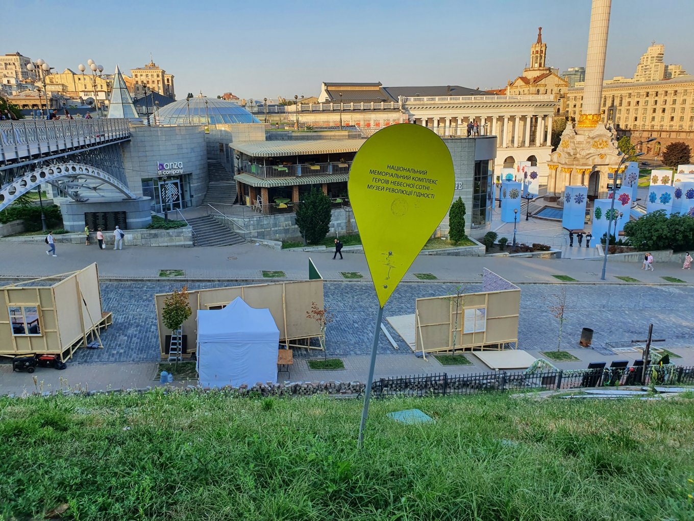 Инсталляция находится посреди мемориала Небесной Сотни, где расположены портреты погибших героев Майдана.