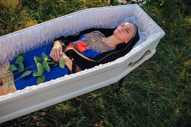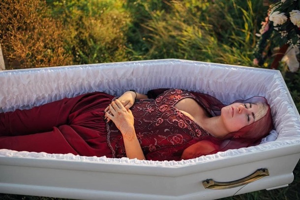 Модели позировали в гробу, представляя коллекцию одежды для похорон в Днепре (фото)