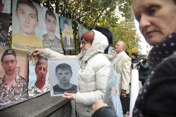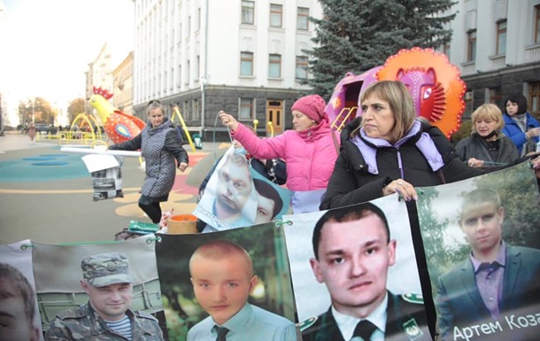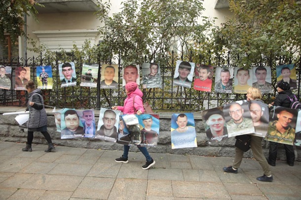 Возле здания ОП родственники пленных и пропавших без вести проводят акцию, чтобы напомнить властям о невыполненных обещаниях.
