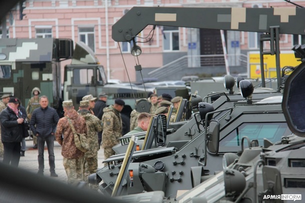 По его словам, на выставке представлено около тридцати единиц военной техники. Среди них - ракетный комплекс Нептун, БТР-4Е, БТР-3ДА, БМП-1ТС и тому подобное.