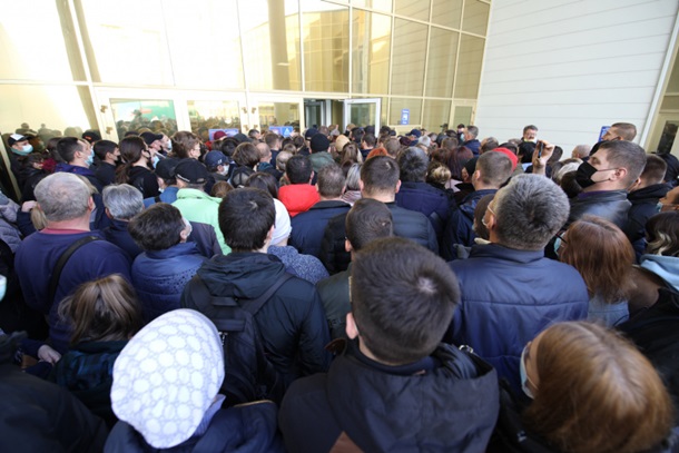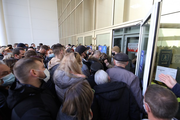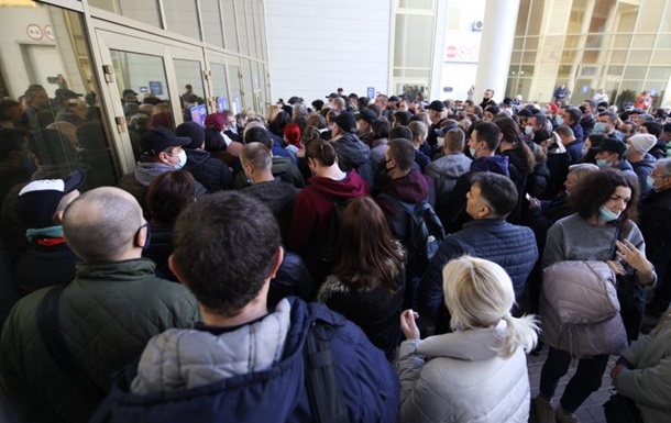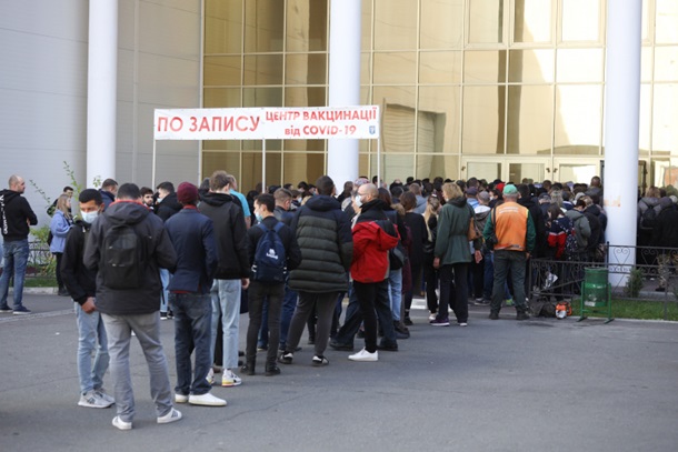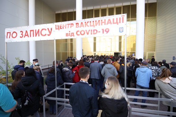 В Киеве у центра вакцинации из-за сбоя образовалась давка (фото)