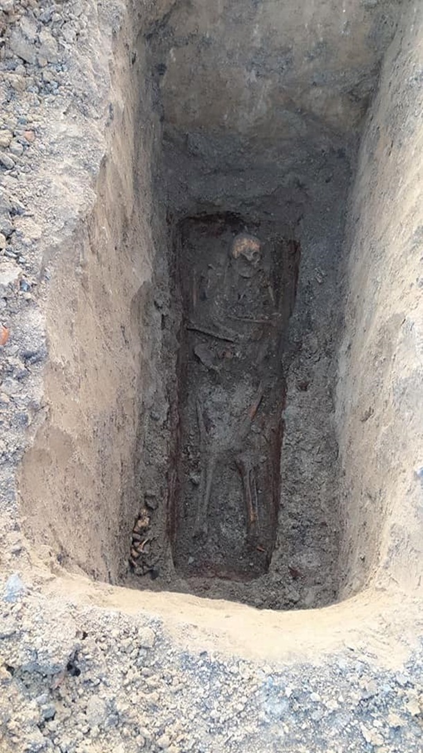 После раскрытия погребальных капсул поднят 31 скелет, 13 монет, пять крестиков и кольцо.