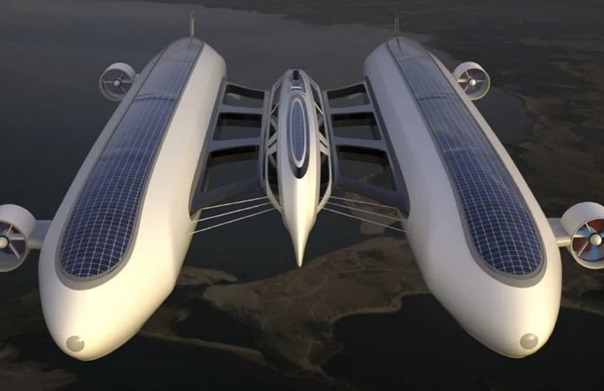 Держаться в воздухе яхта сможет благодаря двум дирижаблям. Они будут наполнены 400 000 куб. м сжатого гелия. Еще в наличии будут четыре электрических пропеллера на сверхлегких солнечных батареях. Как предполагается, в воздухе яхта будет развивать скорость до 60 узлов (112 километров в час).