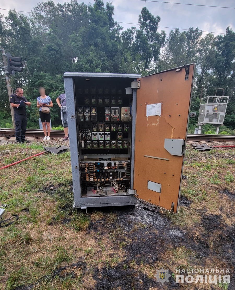 Двох мешканців Чернігівщини поліцейські затримали після підпалу релейної шафи та шафи зв’язку на залізниці. Загалом у такий спосіб вони намагалися знищити чотири релейні шафи, повідомили у Нацполіції.