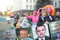 Возле здания ОП родственники пленных и пропавших без вести проводят акцию, чтобы напомнить властям о невыполненных обещаниях.
