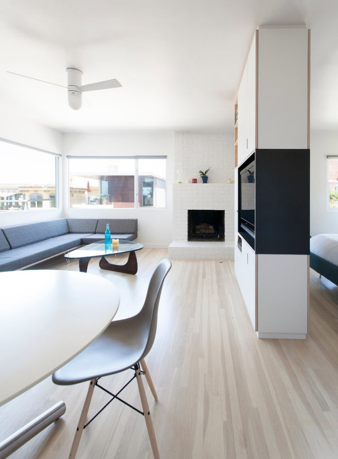 - Контрасты для визуального расширения площади. Светлые квартиры всегда кажутся просторными, но грамотное использование в интерьере ярких акцентов, декоративных предметов разного размера и контрастных цветовых сочетаний дает еще лучший эффект.
