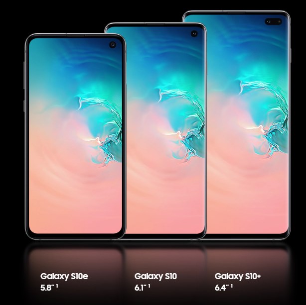 Galaxy S10e оснастили 5,8-дюймовым экраном с разрешением Full HD +, Galaxy S10 — 6,1-дюймовым дисплеем с разрешением Quad HD +, а Galaxy S10 Plus — 6,4-дюймовым Quad HD +. Дисплей Galaxy S10 5G огромен — 6,7-дюймов. Все четыре смартфона имеют соотношение сторон экрана 19:9, что составляет 93,1 процента всего гаджета.