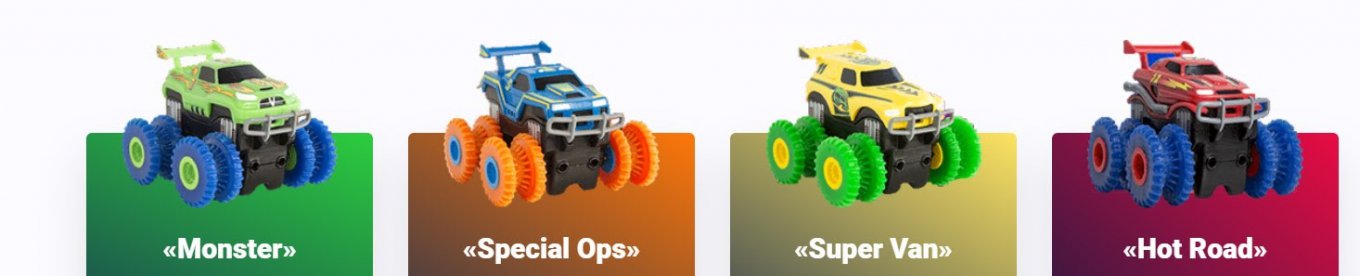 - придумывать новые приключения мультяшным пикапам (машинка Вспыш, Рык, Огурчик, Крушила, Смельчак, Зэг);