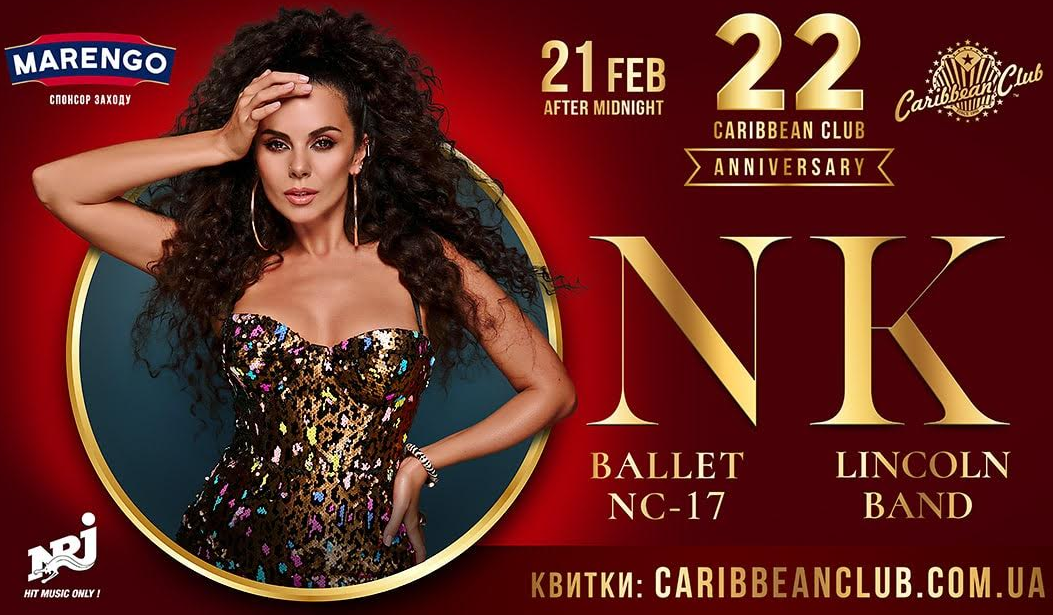 21 февраля столичный Caribbean Club Concert-Hall громко отметит свое 22-летие. Для гостей готовят выступление супер-звезды NK (Настя Каменских), зажигательную вечеринку с кавер-бэндом Lincoln и шоу виртуозных танцовщиц NC-17 Showballet.